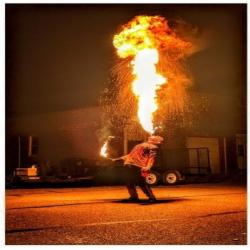 ContactPhoneDescription of performanceOne of a kind Fire show. Fire Breathing, Fire Eating, Swinging a Flaming double Headed Battle Axe, and more. A 60 year old who walk's among the few if not alone. My performance speak's for itself. I alway's go big and never disappoint. Meet "Mr Octane" You'll be glad you did. Keep them guessing and unsure ! A PT Promotion's show.